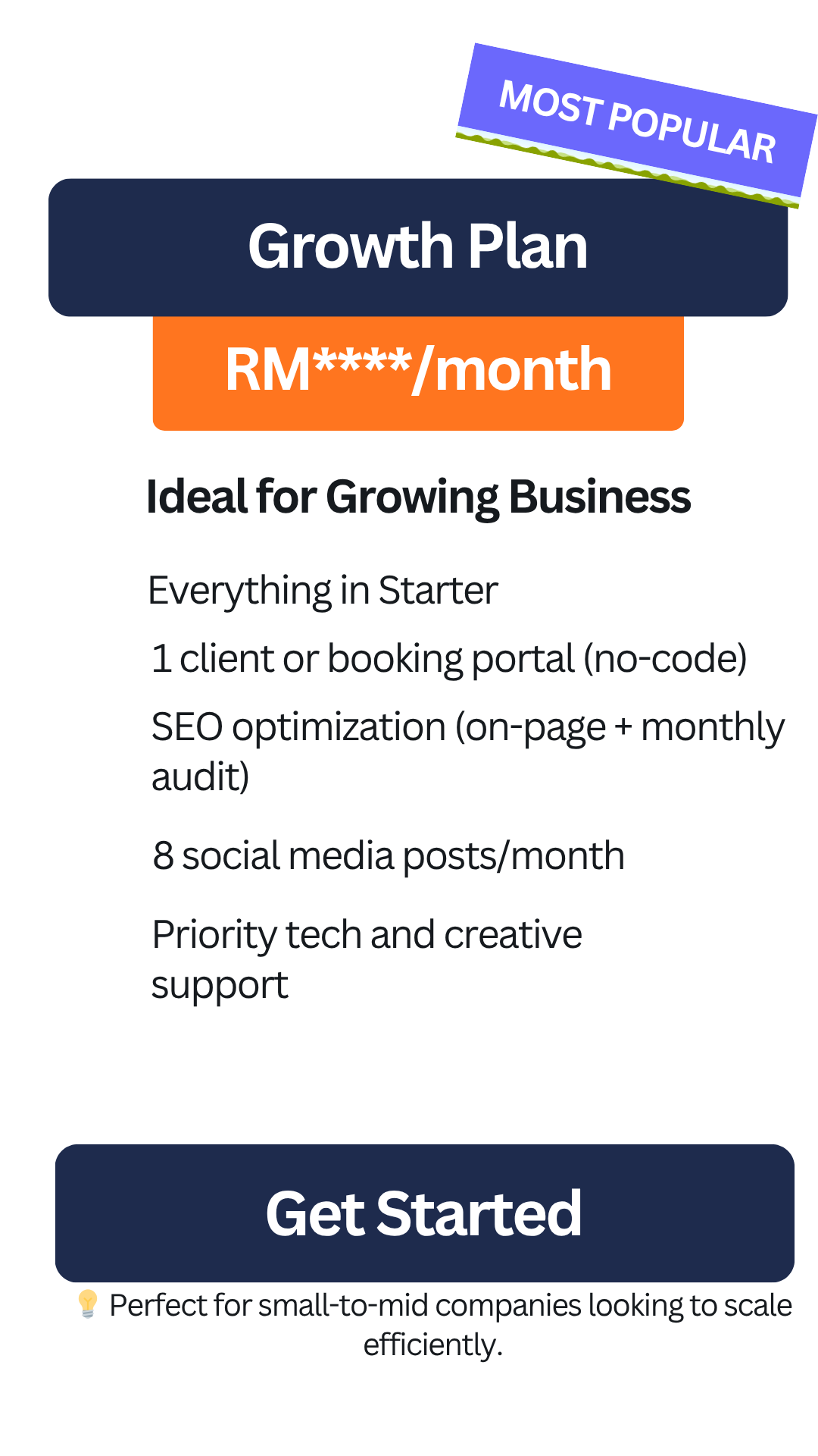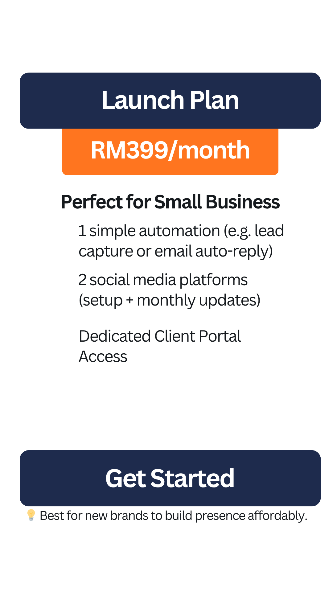 Pick a plan that fits your business needs — from simple automation to full-scale marketing and portal access.